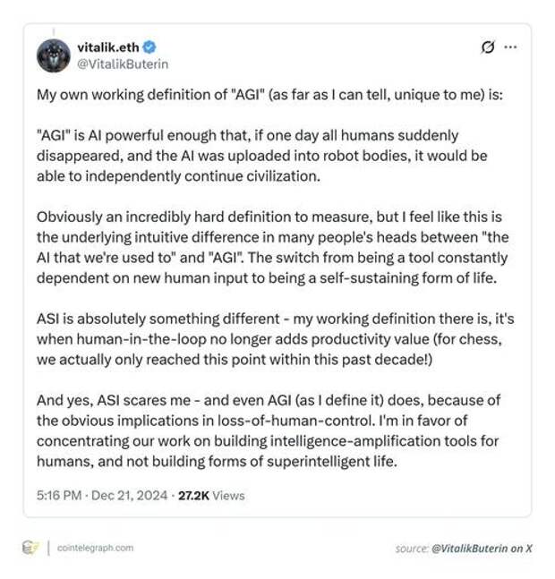Here’s a definition of AGI by Vitalik Buterin, who highlights the sheer potential of AGI: