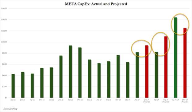 While META had missed CapEx forecasts dramatically for the last two quarters, Q4 2024 saw CapEx catching up notably...