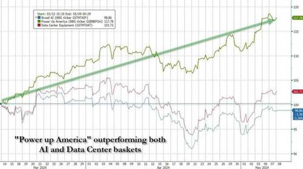 Last month, we published a lengthy report discussing why even as the AI trade may be fizzling, the "electrification" trade, aka the "Power-Up America" trade - so urgently needed to run all those electricity-gobbling data centers needed to run AI - is just getting started and has in fact outperformed substantially both the broader AI and Data-Center Equipment baskets over the past two months...