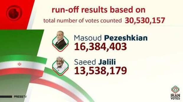 According to the numbers from the run-off which secured Pezeshkian's victory: