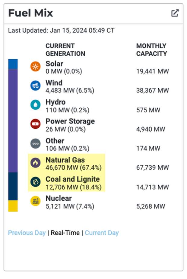 When writing this note, the fuel mix on the grid is primarily natural gas and coal.