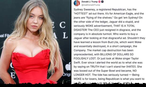 American Eagle's sexually charged ad campaign featuring "Sydney Sweeney has great jeans" has triggered outrage among liberals across the Western world, furious that a beautiful young blonde is the face of the campaign instead of a "diverse," morbidly obese man pretending to be a woman.