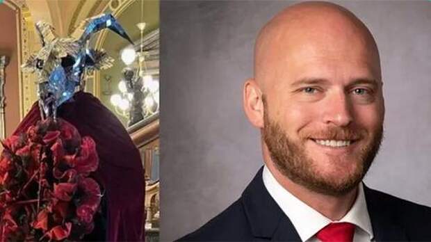 Nothing much to see here, just a Satanic Baphomet horned goat skull in a cape and a blood red pentagram on display in the Iowa State Capitol. Pretty much par for the course in government buildings at Christmas now, right? pic.twitter.com/JovVZTtswW