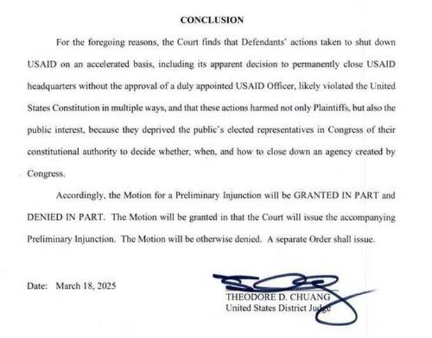 US District Judge Theodore Chuang ruled in favor of more than two dozen unnamed current and former USAID employees and contractors who challenged the Trump administration's efforts to shutter the organization.