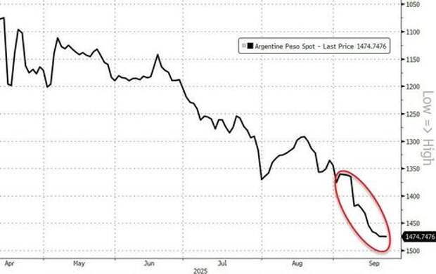 Following his government's resounding loss in local elections - seen as a harbinger of next month's congressional races - Argentine President Milei is facing a renewed crisis as the embattled South American country's currency is collapsing amid fears that he will scrap his defense of the peso (which has already cost hundreds of millions of dollars) and let it plunge as so many of his predecessors have done.