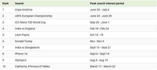 The data and rankings comes from the Google Trends Year in Search 2024 roundup. Search data is from Jan. 1 to Nov. 23, 2024.