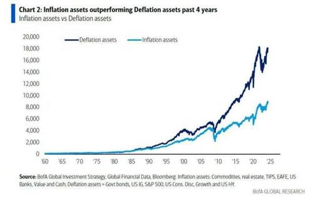 But the regime change of the past 4 years has roles reversed, and now ‘magnificent’ inflation assets are annualizing 11% returns vs 7% for deflation assets.”