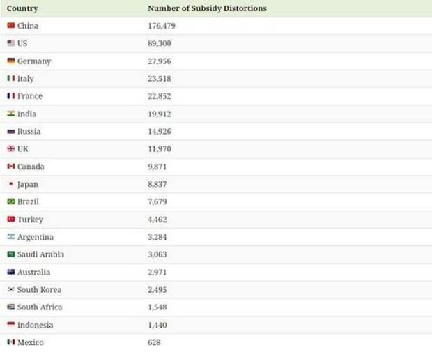A key point to understand is that this data does not represent the number of subsidies implemented by each country. Rather, it shows the number of market distortions that resulted as a consequence of those subsidies.