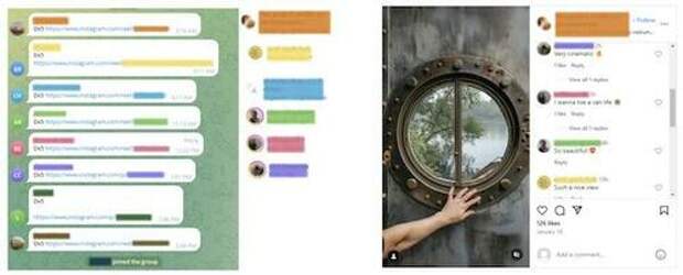 An influencer cartel is a group of influencers who collude to boost their advertising fees by inflating engagement metrics. As in traditional industries (Steen et al. 2013), influencer cartels involve a formal agreement to manipulate the market for the members’ benefit. The cartels operate in online chatrooms. The screenshots below show how one such cartel operates in practice. The image on the left is from an online chat room, where cartel members submit links to their content for extra engagement. Before submitting a link, they must reciprocate by liking and commenting on other members’ posts. An algorithm enforces these rules. The image on the right shows these cartel-induced comments on Instagram. The cartel history and rules make it possible to observe which engagement (comments) originate from the cartel.