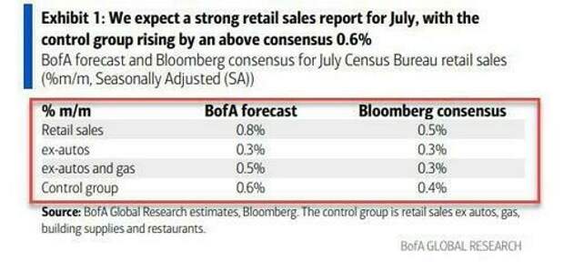 'Brace yourself for a big beat' is the message from BofA's almost omniscient analysts ahead of this morning's retail sales print for July...