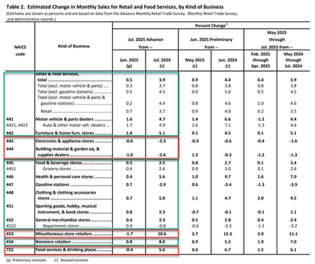 Under the hood, miscellaneous store retailers and food service and drinking places all saw sales decline...