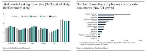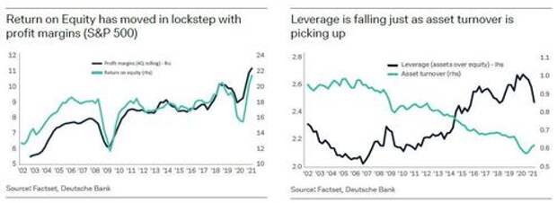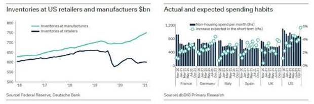 We split DB's "Top 10 Themes" into two posts, each covering 5 of the biggest themes the bank believes will define the coming year. Part 1 will cover 1) An overheating economy; 2) Covid optimism; 3) A hypersonic labor market and inflation; 4) Corporate focus on asset efficiency; 5). Inventory glut. The second part, which we will publish tomorrow will turn to 1) Antitrust (or competition) renaissance; 2. The end of free money in stock markets; 3) Space: a worrying geopolitical frontier; 4) Central Bank Digital Currencies: Growing into reality; 5) ESG bonds go mainstream.