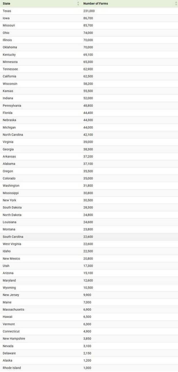 With 231,000 farms, Texas has more than double the second-highest state, Iowa.