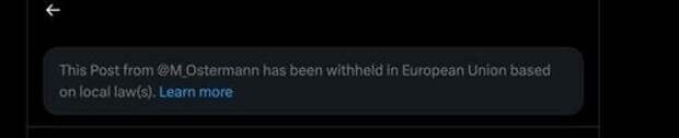 For those looking for the post, they are now greeted with this text. Likely, the post was removed under the Digital Services Act, a powerful tool used to suppress speech on Europe’s web.