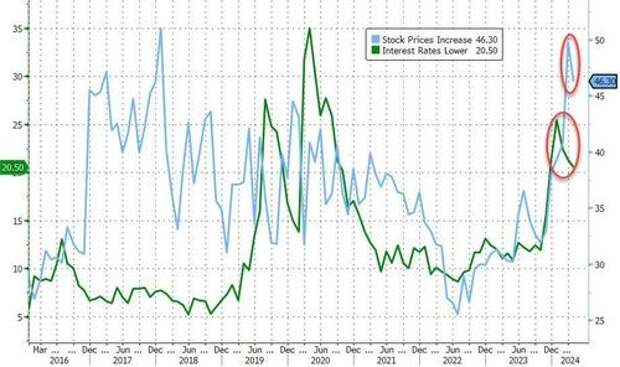 Finally, fewer of those surveyed believe stock prices will be higher and interests lower...