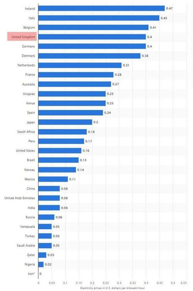 They want Britain to be a world leader in Net Zero and don’t care about the price the rest of us have to pay for this utterly pointless ambition. Britain is responsible for only 1% of global CO2 emissions so even if we achieved Net Zero tomorrow it would have no measurable impact on global temperatures.Household electricity prices worldwide in December 2023, by select country (in U.S. dollars per kilowatt-hour). Source: Statista