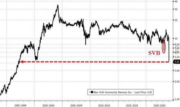 Overnight, Moody's cut all long-term and some short-term ratings of New York Community Bancorp to 'junk' (Ba2 from Baa3) over the bank's high exposure to the multi-family CRE space. Shares of the bank have collapsed to 1997 lows.