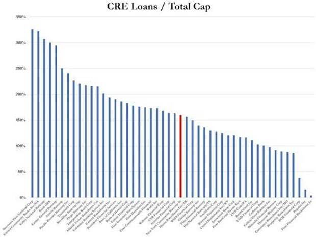 Here are the regional banks with the biggest CRE loans relative to capital.