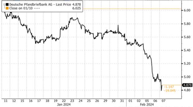 Bloomberg reports that real estate-focused German lenders were hammered this week after Morgan Stanley analysts told clients to sell senior bonds linked to Deutsche Pfandbriefbank AG due to the lender's high exposure to the US CRE market.
