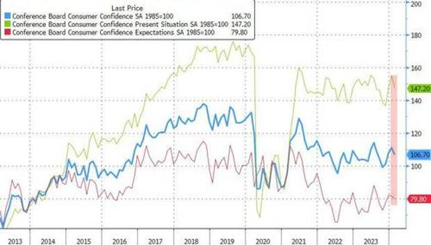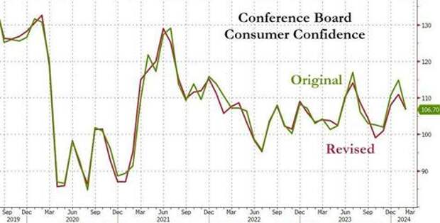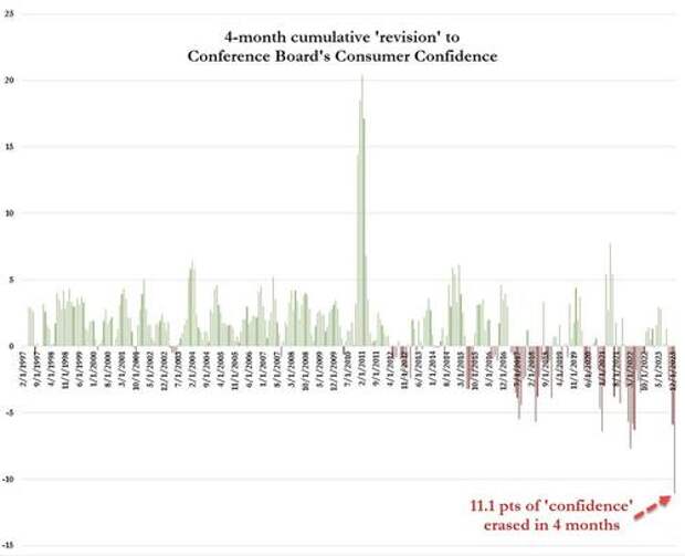 But, for the fourth straight month, The Conference Board revised its consumer confidence data significantly lower. In fact January's was the biggest downward revision since Feb 2022...