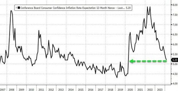 The Conference Board's indicator inflation expectations tumbled further to +5.2% - still notably high but trend in the right direction...