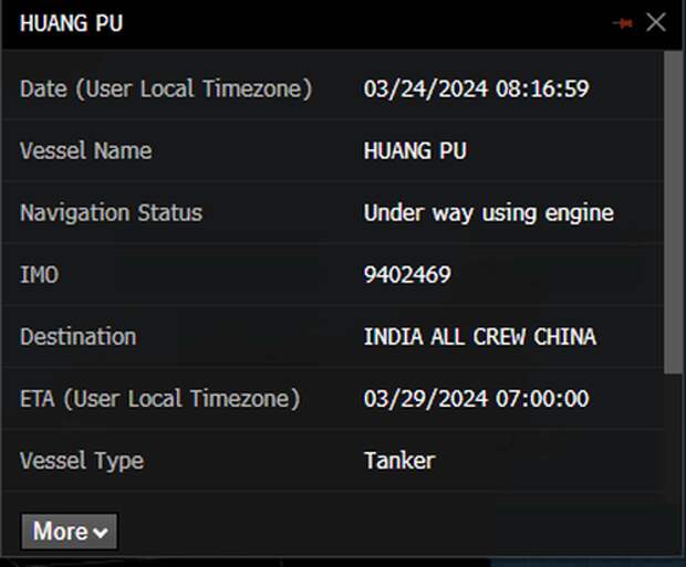 March 23, the Iranian-backed Houthis launched four anti-ship ballistic missiles (ASBM) into the Red Sea in the vicinity of M/V Huang Pu, a Panamanian-flagged, Chinese-owned, Chinese-operated oil tanker.