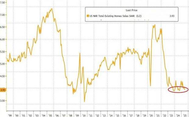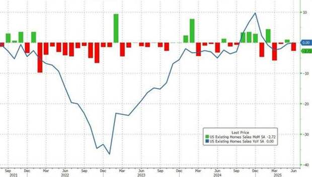 The analysts were right as sales dropped 2.7% MoM (vs -0.7% MoM expected), leaving existing home sales unchanged year-over-year.