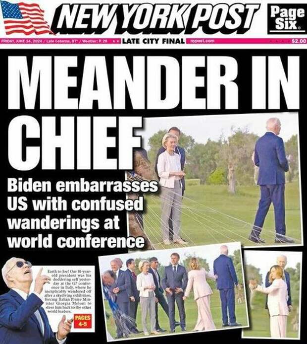 Joe Biden’s cognitive decline was on show for the entire world at the G7 summit in an Italy Thursday as he randomly wandered off from the other dignitaries during a sky diving demo.