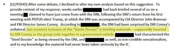 Tulsi’s new document is a whistleblower statement, from a former “Deputy National Intelligence Officer (DNIO) at the National Intelligence Council (NIC).” The former official’s story mostly surrounds his suppressed objections to the use of unverifiable evidence in the Russiagate assessment, and subsequent odyssey through the whistleblower bureaucracy. A tale I’d never heard before, that the dossier material was inserted during a car ride involving James Comey, James Clapper, and John Brennan, makes a cameo. The jokes write themselves: