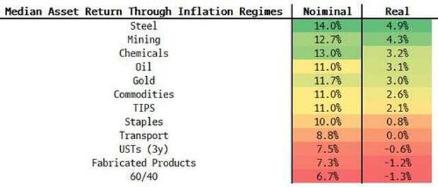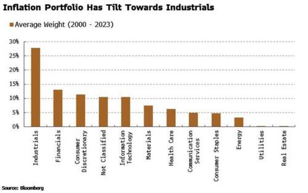 The most common grouping is industrials. Again, this is reassuring as in inflation regimes over the last five decades, the top performing sectors were steel, mining and chemicals.