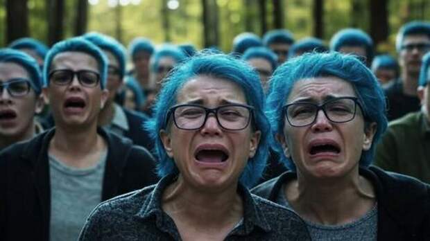 Along with smiling, dancing and journaling, it suggests blue haired people gather in groups to have a communal cry, or go ‘forest bathing.’