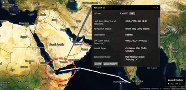 MSC confirmed to Bloomberg that the vessel was attacked while transiting near the Bab el-Mandeb strait from Singapore toward Djibouti.