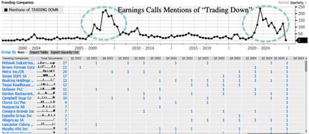 At the beginning of August, we noted that the last time "trading down" mentions spiked on earnings calls was during GFC.