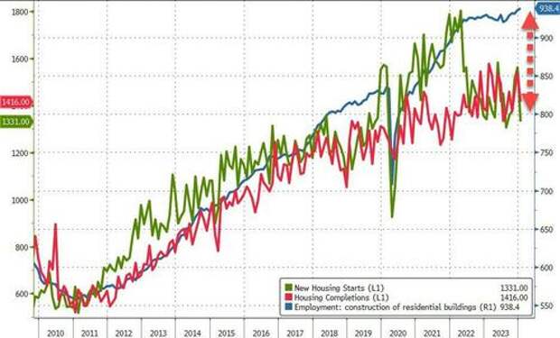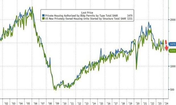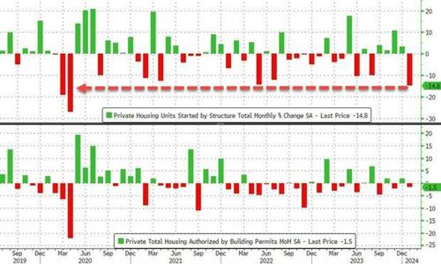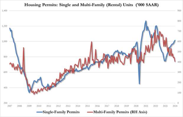 Multi-family permits cratered to their lowest since Oct 2020. Permits for one-family homes edged higher after rising consistently throughout 2023