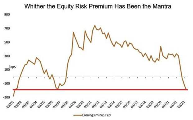 The prospective earnings yield on the Nasdaq 100 adjusted for the Federal Reserve’s benchmark rate turned negative late last year, with this year’s stunning rally taking it further south: