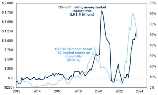 But, with recession odds declining rapidly, are we about to see MM outflows accelerate?