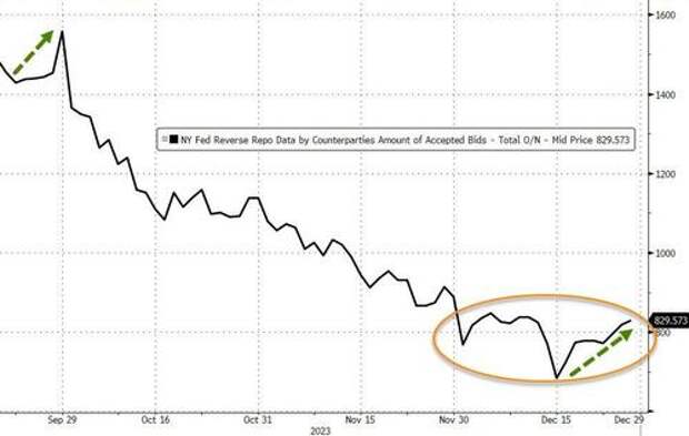 After two weeks of outflows, money-market funds returned to inflows in the week ending 12/27, adding $16.4BN to $5.89TN...