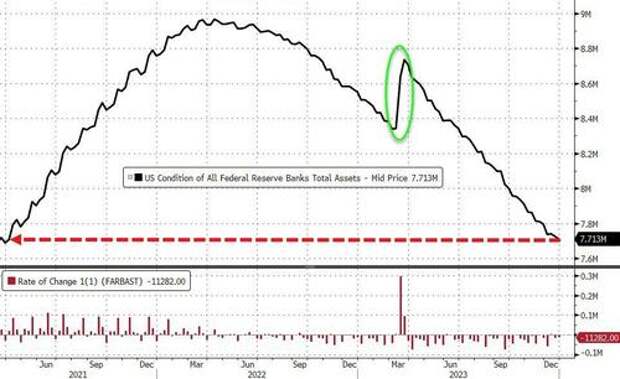 The Fed's balance sheet shrank by $11.3BN last week to its lowest level since March 2021...