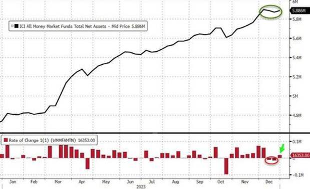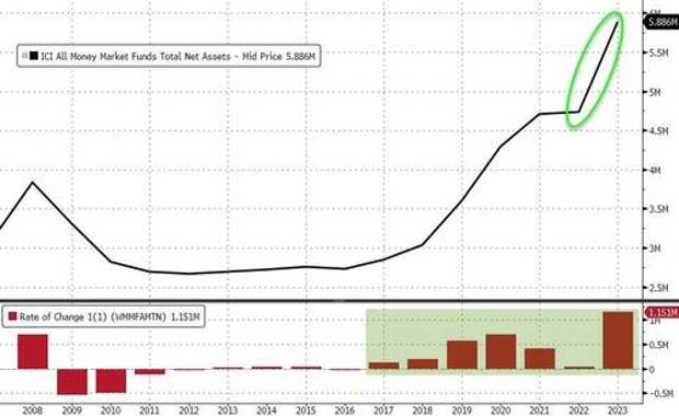 Which means 2023 saw the largest annual money-market inflow ever - a whopping $1. 151TN. That is the seventh year in a row of annual MM inflows...