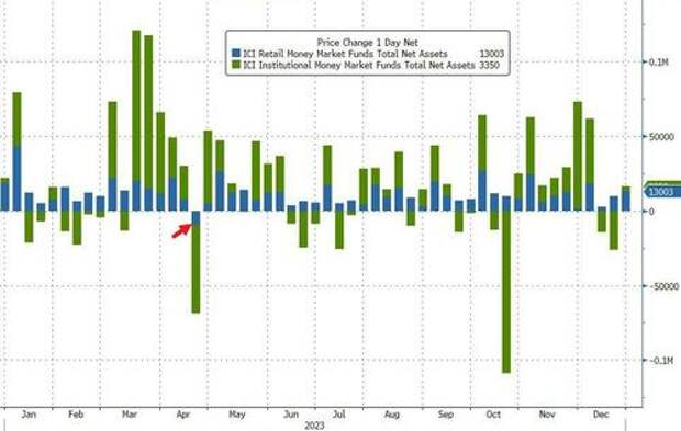 Retail money-market funds capped the year with yet another inflow (+$13.3BN) meaning there was only one weekly outflow from retail funds in 2023. Institutional funds saw a $3.4BN inflow also...