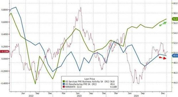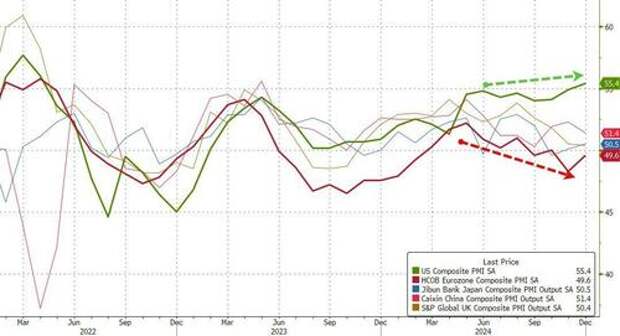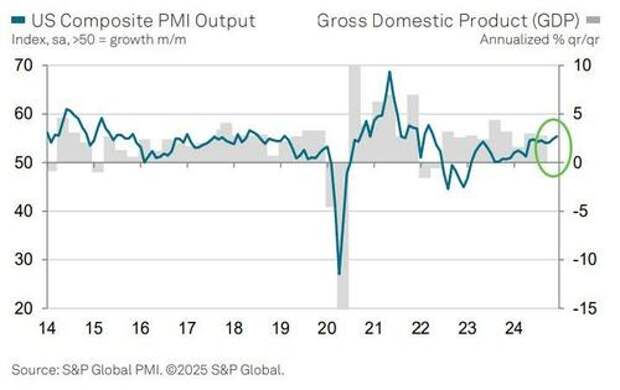 "The US economy ended 2024 on a high according to the latest business surveys. Business activity in the vast services economy surged higher in the closing month of 2024 on fuller order books and rising optimism about prospects for the year ahead.