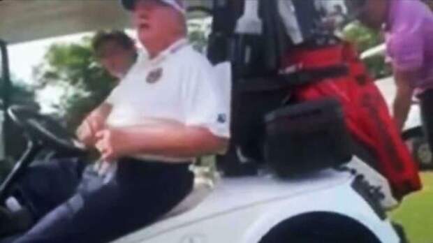 “They just announced he’s probably quitting,” Trump concludes before driving away and saying, “Keep knocking ’em out, right? ”