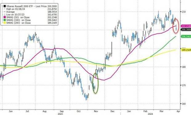 Small Caps (IWM) closed below their 50DMA for the first time since November...
