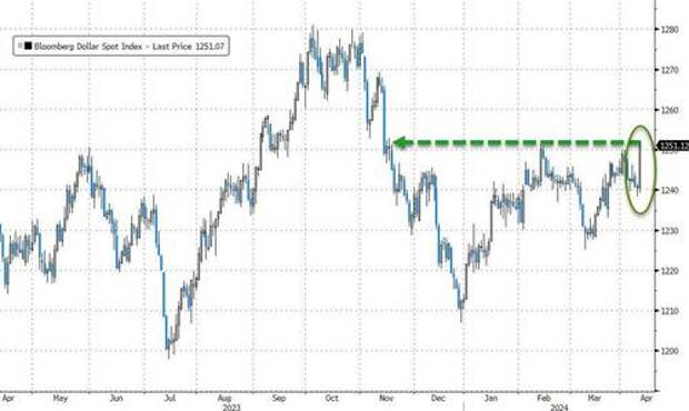 The dollar soared on the (less dovish and maybe hawkish) CPI print to its highest close since Nov 2023...