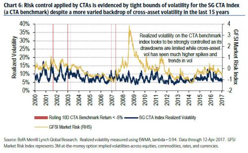 However, due to various size-related limitations, the real risk is fear itself, but low vol limits shock size. As BofA adds, "the largest risk from CTA selling is the flows generated from non-CTA funds fearful that they could cause the next crash. However, understanding CTA mechanics and the limits of their impact can help investors more confidently take advantage of any potential overreaction.
