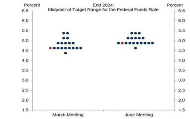 While policymakers are widely expected to hold borrowing costs at a two-decade high, there’s less certainty on officials’ quarterly rate projections, also known as the dot plot, where most expect the Fed to revise its dot plot from three rate cuts for the balance of 2024 to two, but a hawkish surprise of just one rate cut can not be excluded (see preview here). In any case, Fed voters already have the CPI print for May and it will feature prominently in their deliberations.