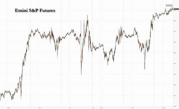 Futures are up modestly after another record close on Wall Street heading into today's double whammy of CPI, and FOMC Dot Plot update, with Nasdaq leading and small-caps lagging. As of 8:00am, S&P futures are up 0.1% to 5,390 and set to extend the stretch of record highs as traders position for the potential disruption from US inflation data landing just hours ahead of Federal Reserve’s interest rate decision on Wednesday; Nasdaq futures rose 0.