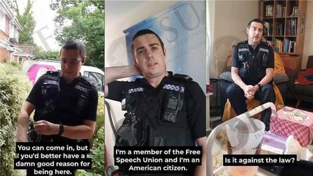 He told her someone had lodged a complaint about her social media posts. She told him she was an American citizen and a member of the Free Speech Union and he should be investigating burglaries and rapes, not hurty words on social media.