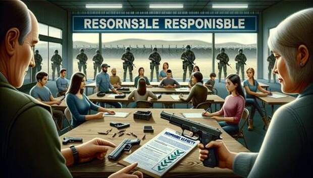 Its image for a campaign to “promote gun ownership” yields a dystopian view of a fenced-in classroom, militarized guards, and unsafe gun handling, complete with the instructor’s finger on the trigger.