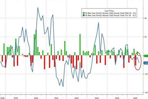 6% MoM to +4.1% MoM). Despite the upward revision, new home sales remain down over 8% YoY...Source: Bloomberg